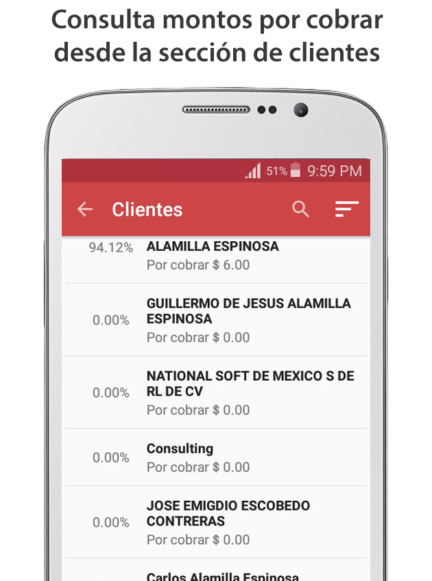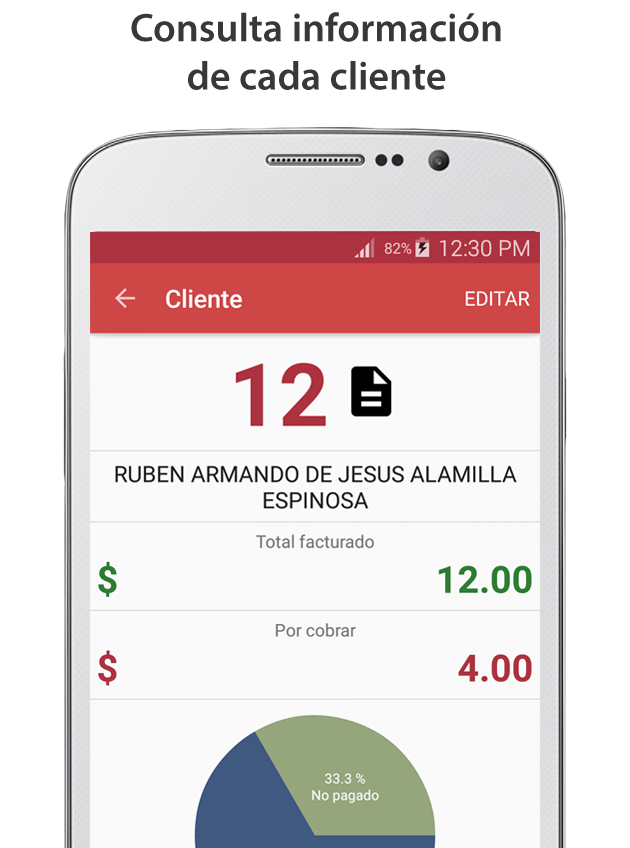 La app te dará información valiosa sobre tus clientes como: Montos facturados y montos por cobrar